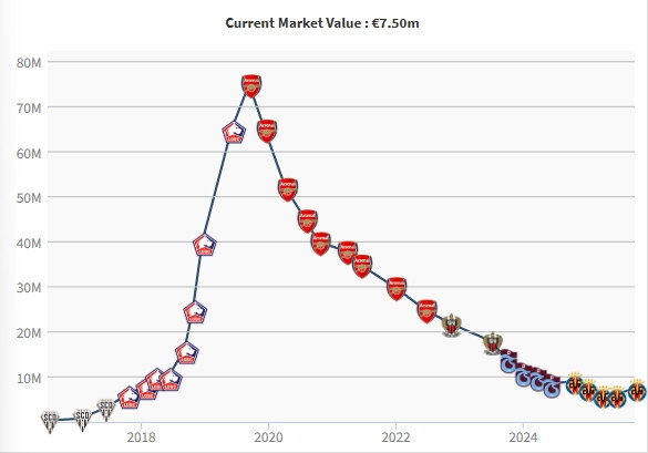 Nhà sản xuất song song đầu tiên của Arsenal, La Liga Rebirth, giá trị của Pepe đã tăng lên 7,5 triệu euro, đạt 1/10 đỉnh cao